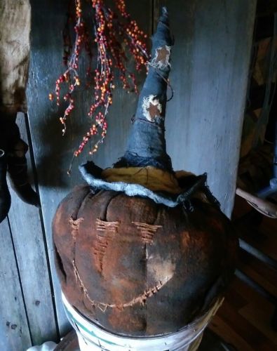 Title (ebay affiliate link): Primitive Folk Art Fall Black Jack O Lantern Pumpkin with Witch Hat~StoneMtPrim