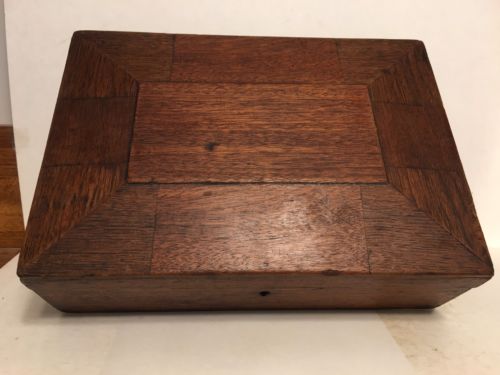 Antique Early Wood Box CIGAR OAK INLAID TOP Writing Box