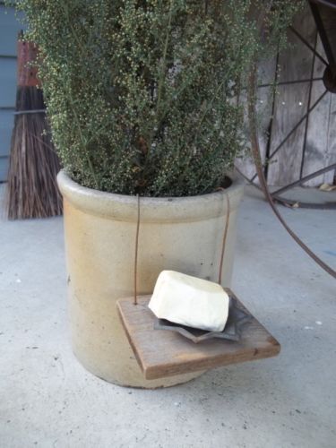 Title (ebay affiliate link): Primitive wooden make-do soap holder & aged tin w/small olde fashioned lye soap