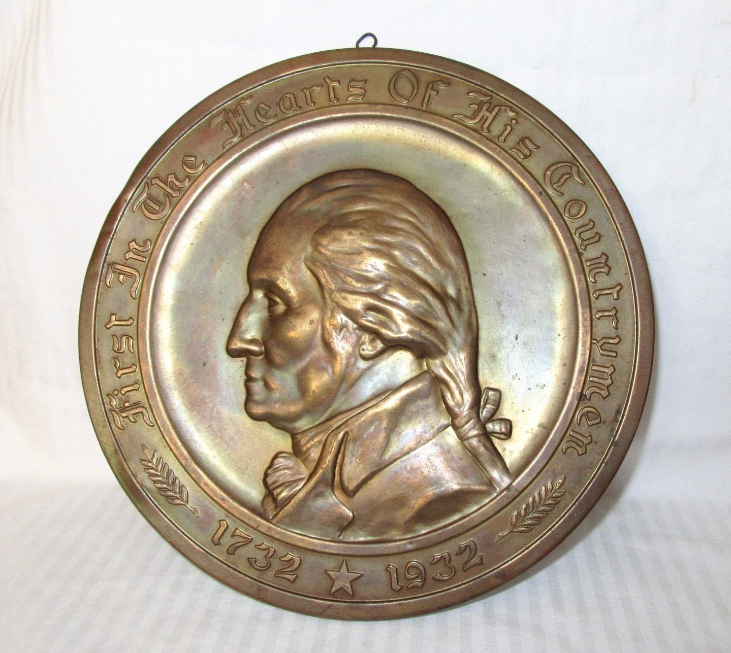 1932 George Washington Birth Bicentennial Brass Wall Plaque - 8"