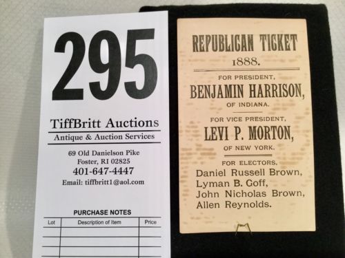Title (ebay affiliate link): #296 - 1888 Republican Ticket, For President Benjamin Harrison, V.P. Levi Morton