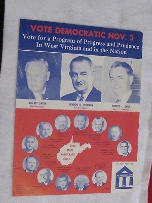 Title (ebay affiliate link): 1964 West Virginia Political Election Flyer Featuring Smith, Johnson, & Byrd