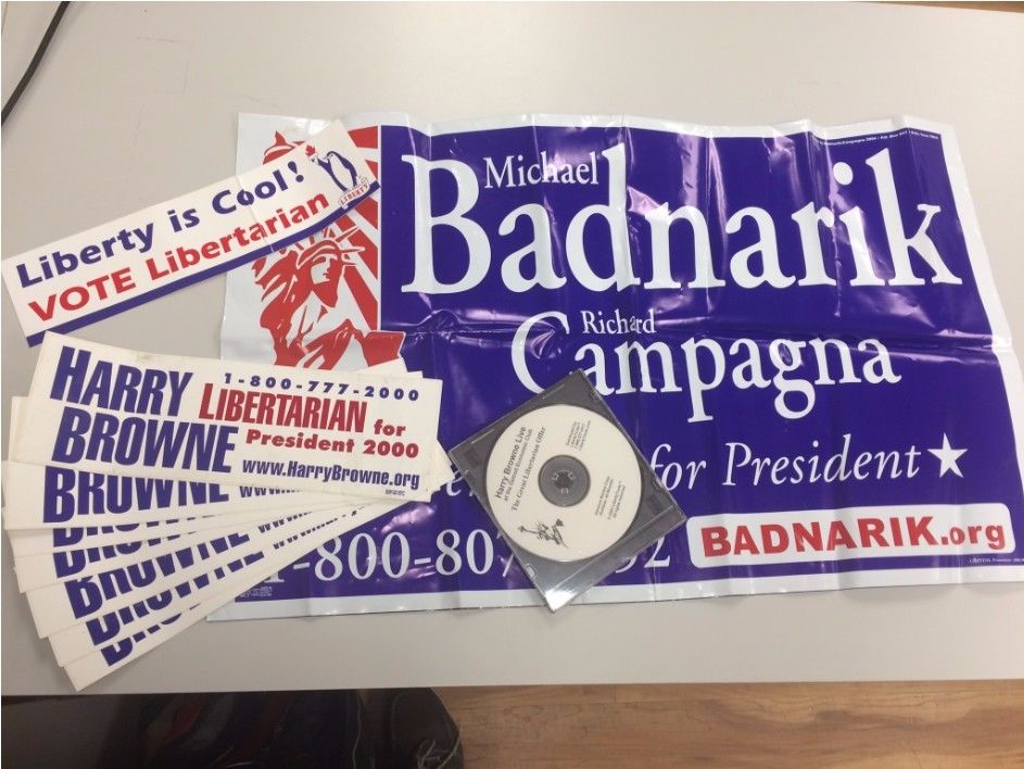 libertarian, political memorabilia, bumper stickers, Browne, Badnarik, Campagna