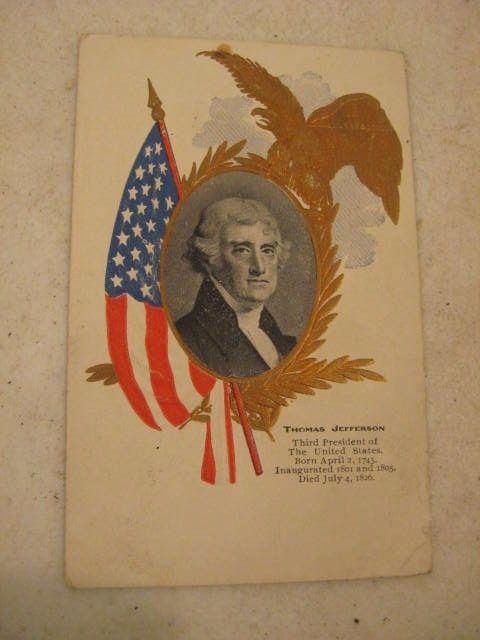 THOMAS JEFFERSON AMERICAN FLAG POSTCARD