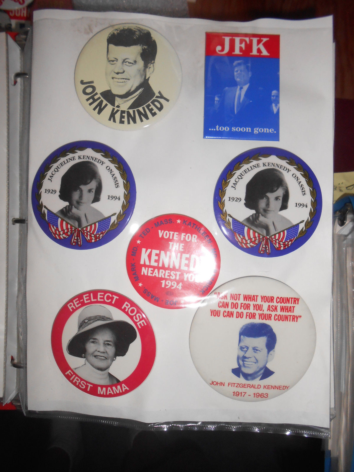 LOT OF 7 PINBACK BUTTONS KENNEDY FAMILY