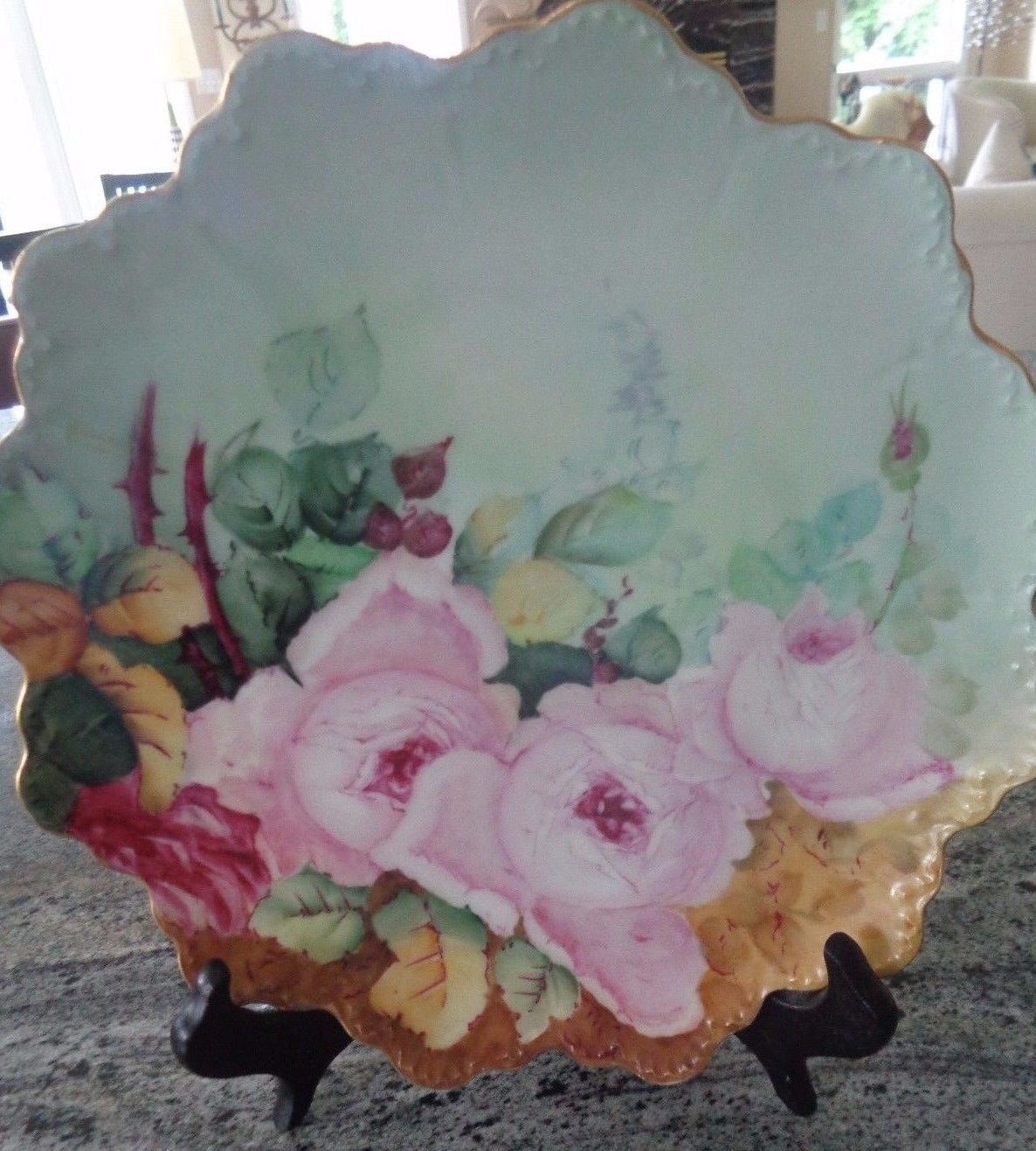 Title (ebay affiliate link): VINTAGE ANTIQUE R C HALMA BAVARIA PHENOMENAL HAND PAINTED CABBAGE ROSES 24K GOLD