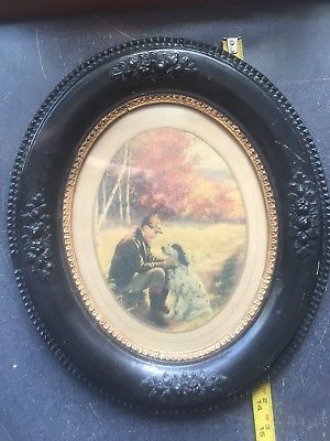 ANTIQUE VICTORIAN OVAL PICTURE FRAME NICE HUNTING SCENE