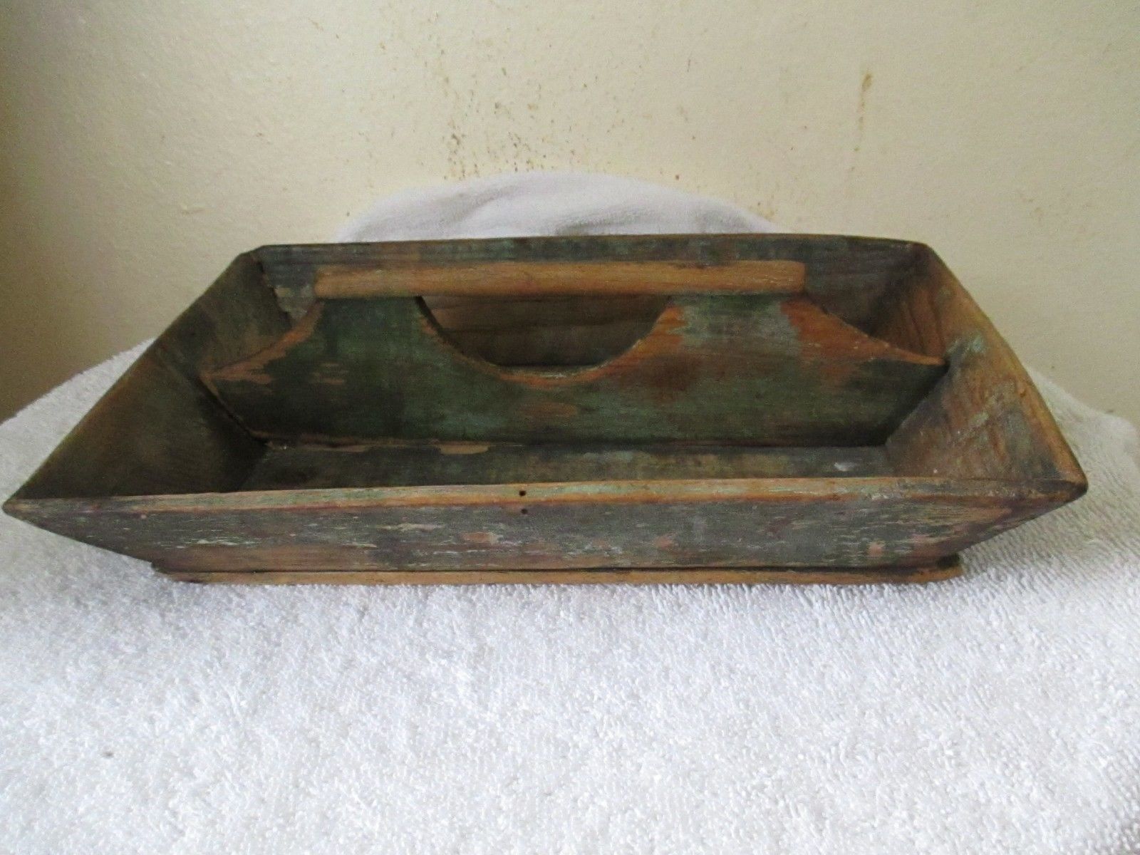Antique Primitive Cutlery Wood Box Tray Tote