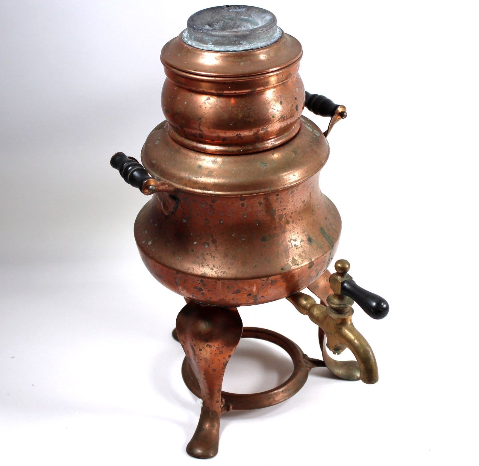 Title (ebay affiliate link): Rare Antique Copper Hot Water Tea Coffee Urn Warmer with Spout 12" Tall