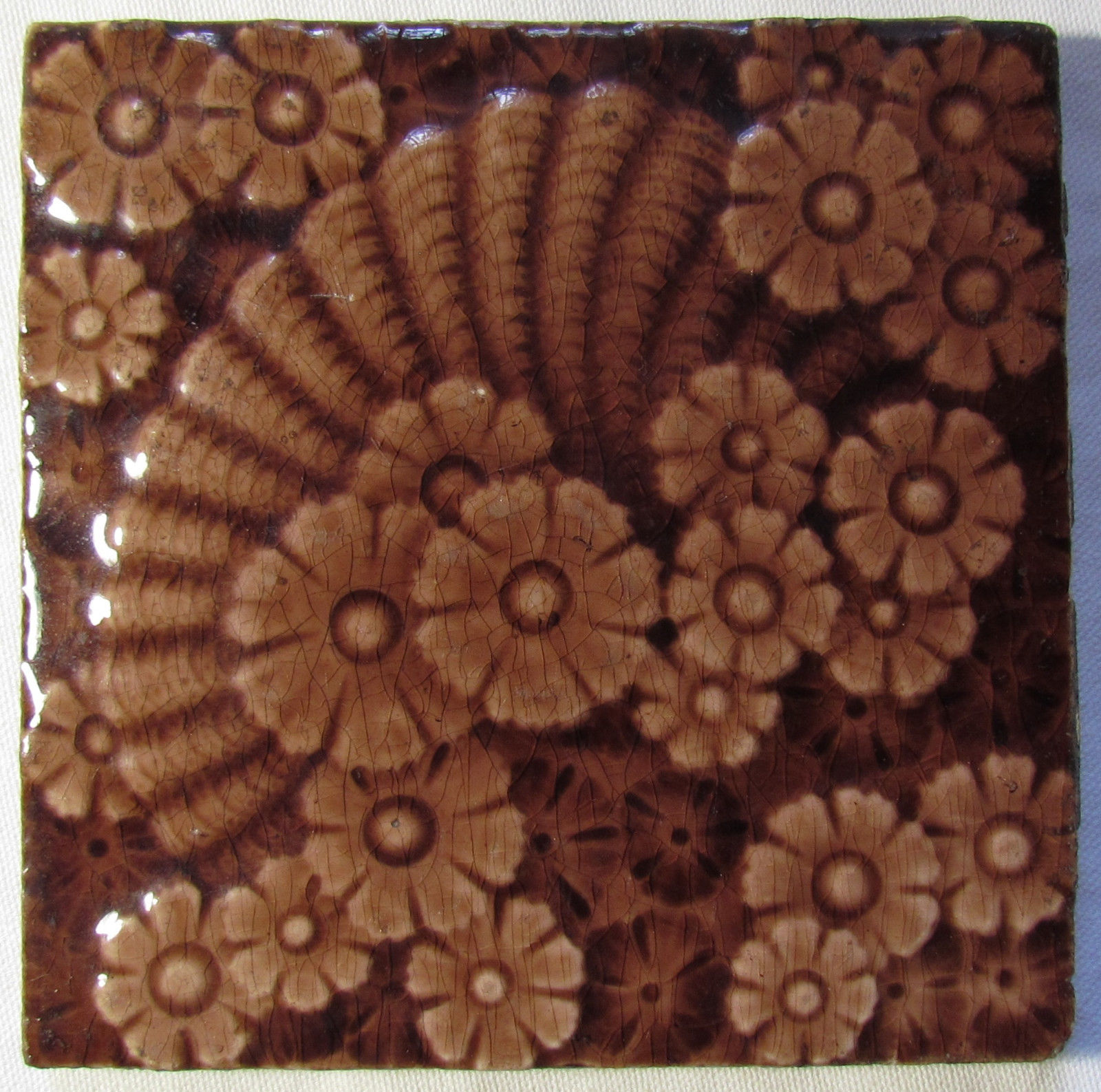 Antique Art Pottery Tile FLORAL 6â€x6â€