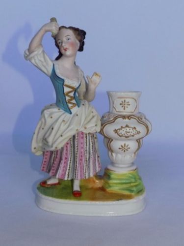Title (ebay affiliate link): Antique 19th/18th Century French Bisque Porcelain Girl w/Bird Vase Figurine