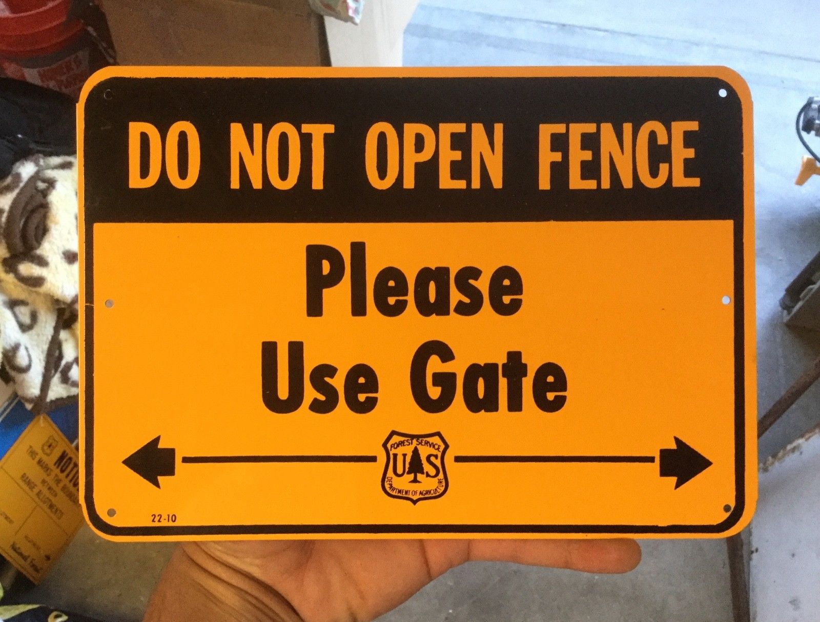 Title (ebay affiliate link): Vintage 50s DO NOT OPEN FENCE PLEASE USE GATE ARROW Metal Sign US Forest Service