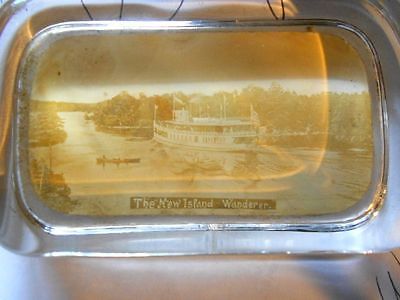 RARE VTG Thousand Islands NY Steamer Boat New Island Wanderer glass paperweight