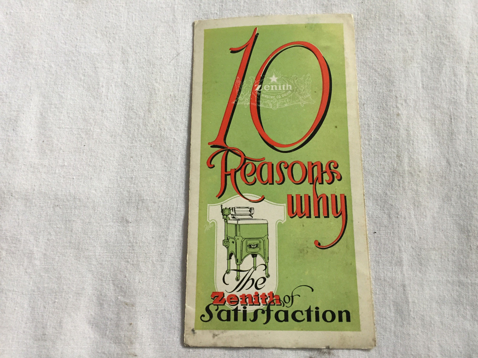 Vintage ZENITH WRINGER CLOTHES WASHER Pamphlet 1920''s HIRSCHY Duluth Mn Oh
