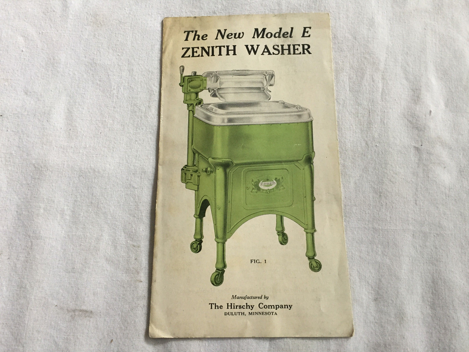 Title (ebay affiliate link): Vintage ZENITH MODEL E WRINGER CLOTHES WASHER Pamphlet 1920''s HIRSCHY