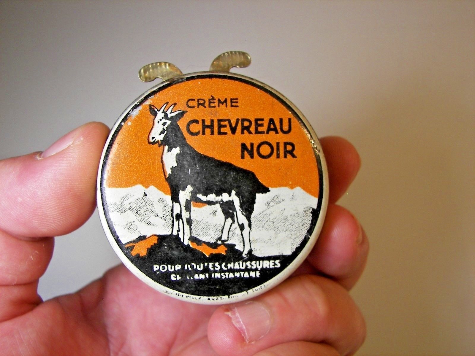 Title (ebay affiliate link): Advertising Shoe Cream Tin Chevreau Noir 1920 Black Goat Wax Blechdose