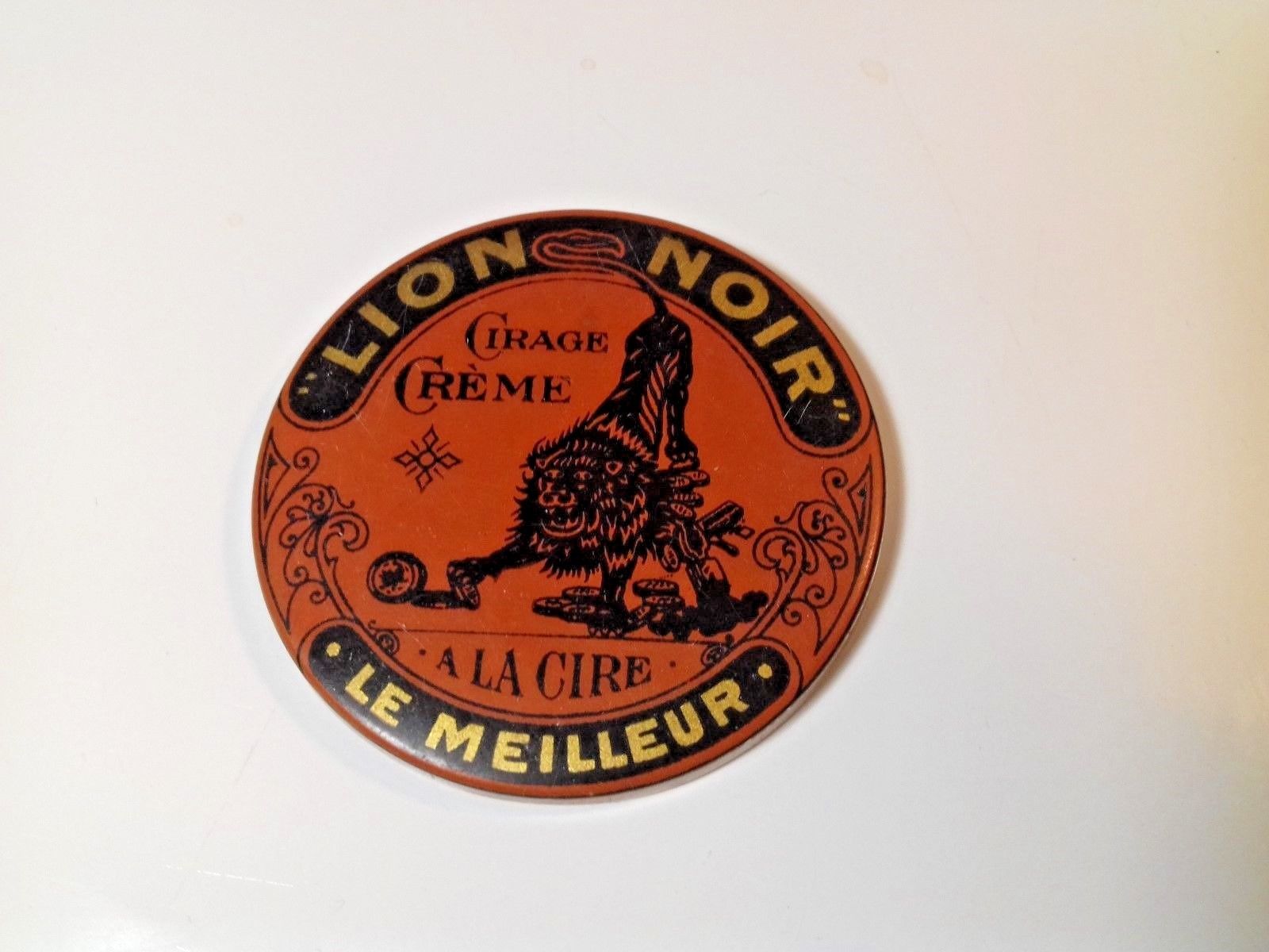 Title (ebay affiliate link): Rare Advertising Celulloid Pocket Mirror LION NOIR 1920s Wax Taschenspiegel