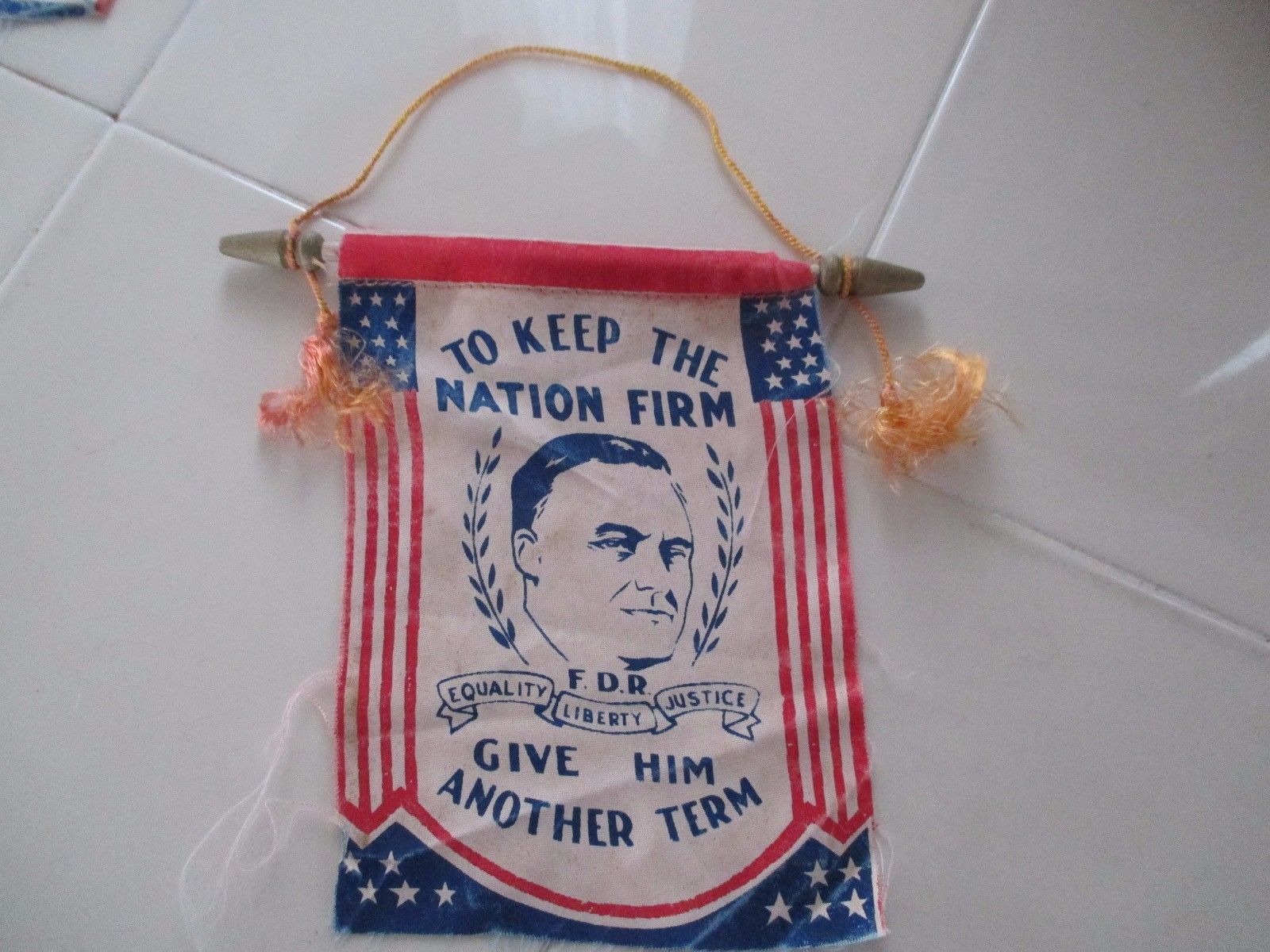 Title (ebay affiliate link): Vintage FDR Roosevelt 1940 Presidential Campaign Slogan Cloth Banner