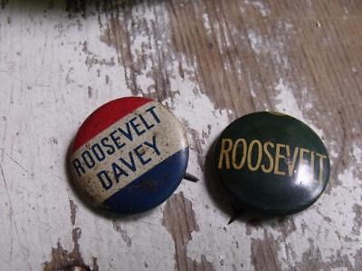 2 Vintage 1930s FDR Franklin D Roosevelt Buttons Roosevelt Davey