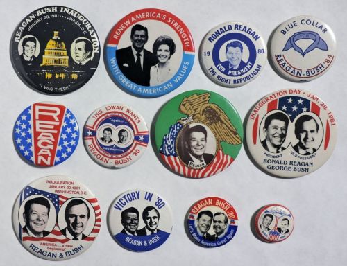 Title (ebay affiliate link): S871. VINTAGE: Lot of 12: RONALD REAGAN Campaign Pinback Buttons (1980''s) `