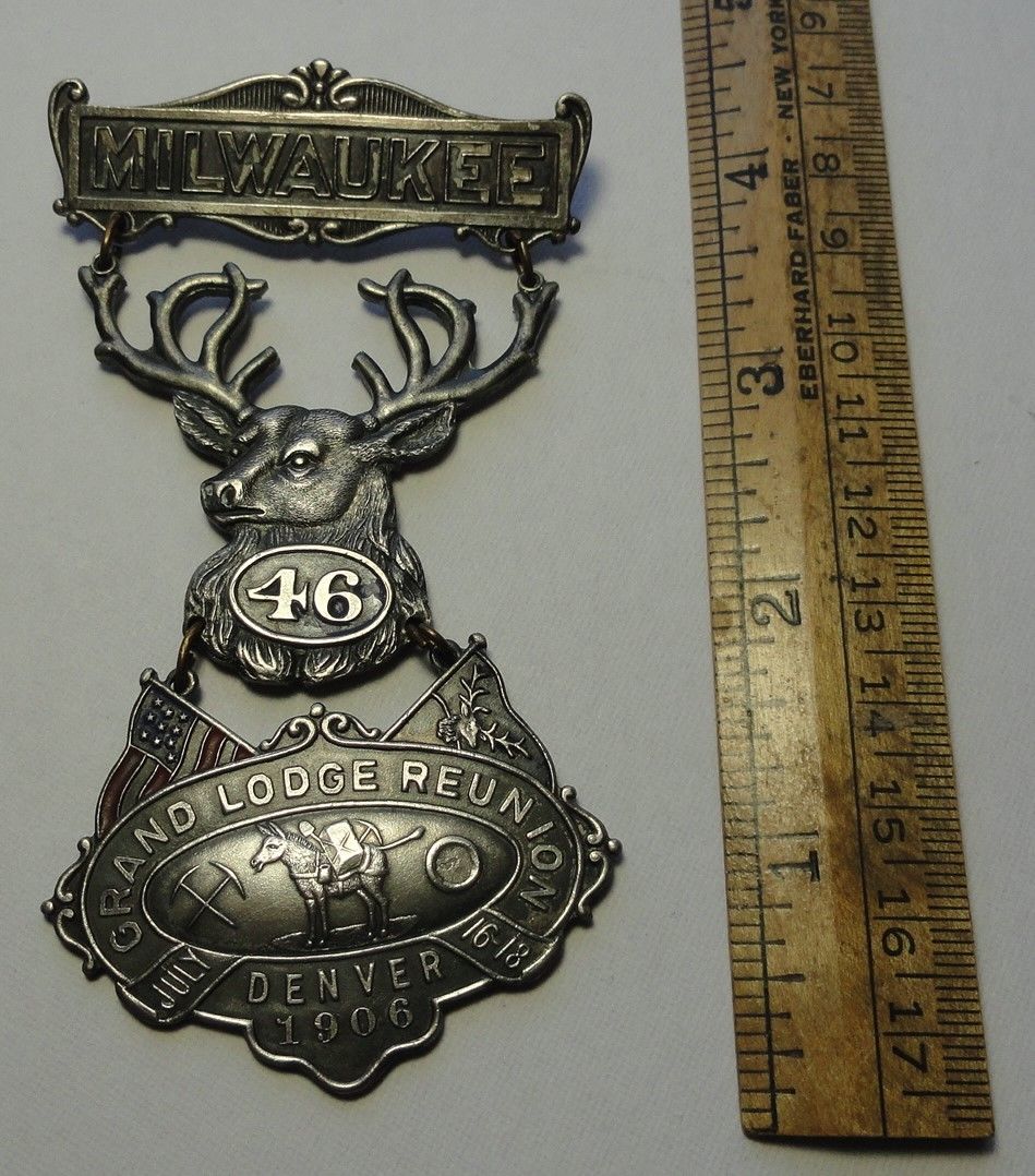 Title (ebay affiliate link): 1906 Denver,Colorado Miner''s Medal, Elks BPOE Reunion, Milwaukee Lodge #46.