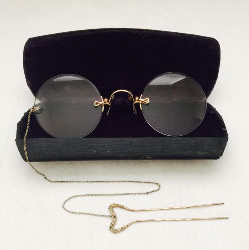Title (ebay affiliate link): ANTIQUE Gold Tone / Filled? PINCE Nez ''MARCO'' SPECTACLES + Hairpin Chain & Case