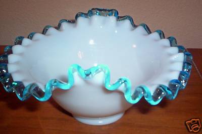 Vintage Milk Glass Candy Dish Fenton Aqua Crest Ribbon