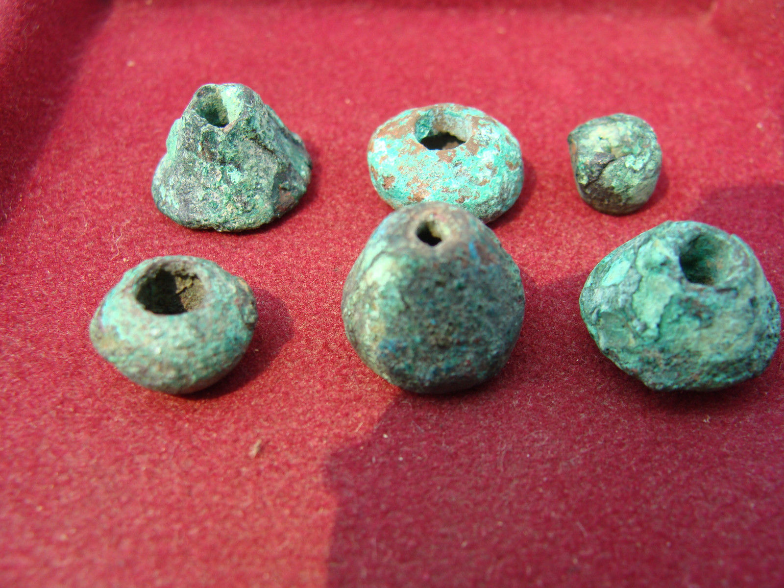 Title (ebay affiliate link): Lot of 6 ANCIENT PRE-COLUMBIAN MOCHE COPPER SPINDLE WHORL BEADS 100BC-600AD PERU