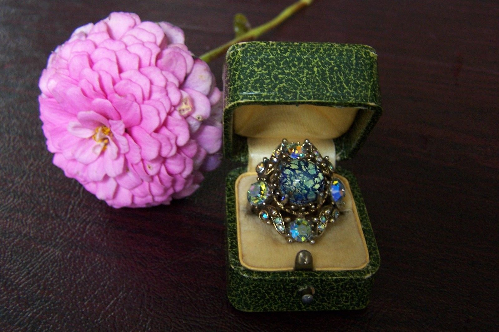 Antique Hollycraft "cat eye" ring 1958 ~ with antique ring box