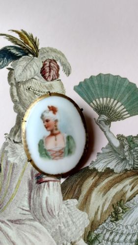 Title (ebay affiliate link): Antique Victorian Hand Painted Porcelain Lady Brooch Pin