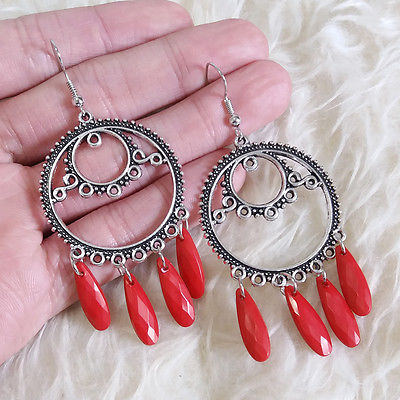 Title (ebay affiliate link): Vintage Women''s Bohemian Antique Plate Red Beads Dangle Fall Drop Hook Earrings