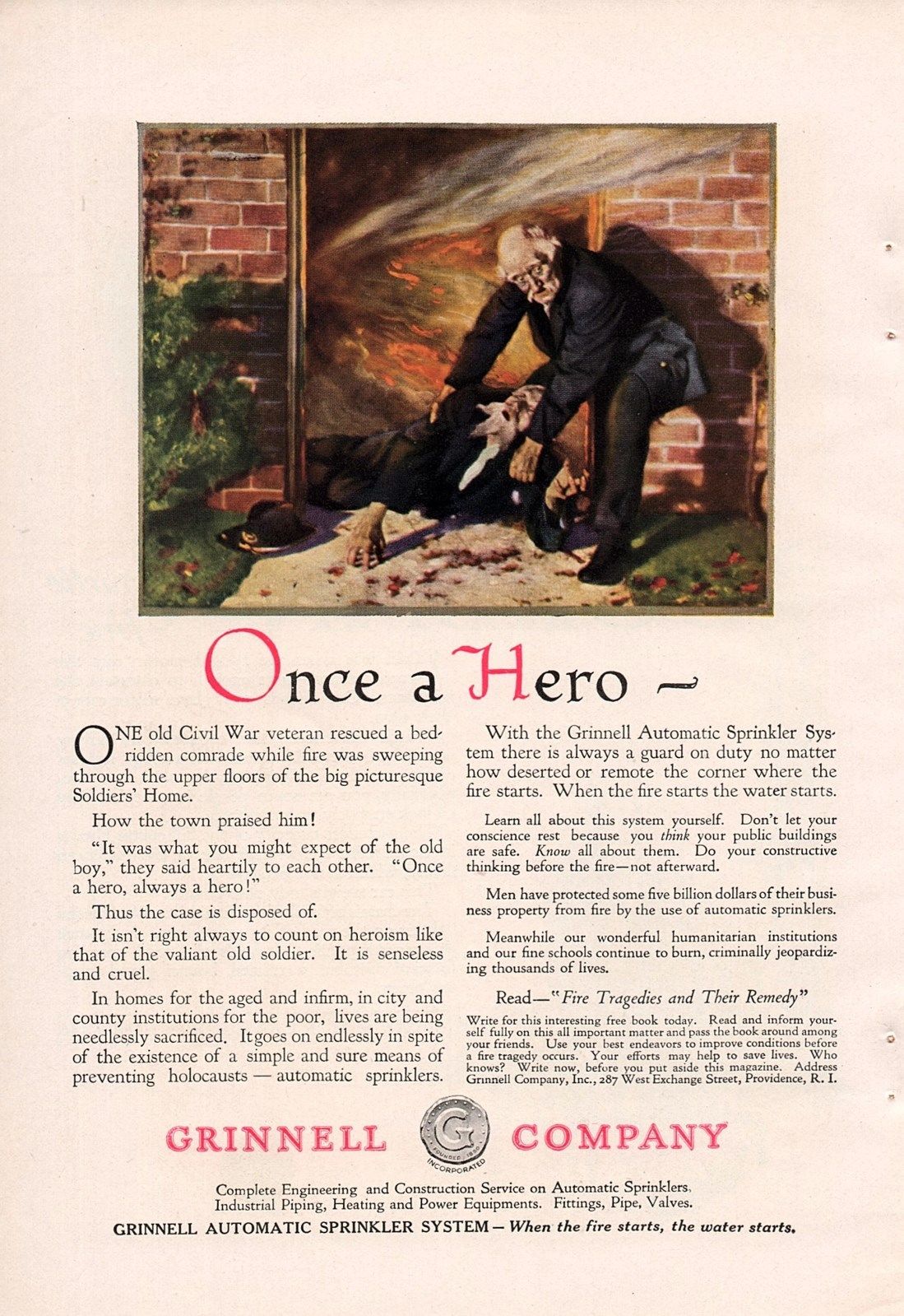 1920 COLOR GRINNELL AUTOMATIC SPRINKLER AD-OLD SOLDIERS HOME