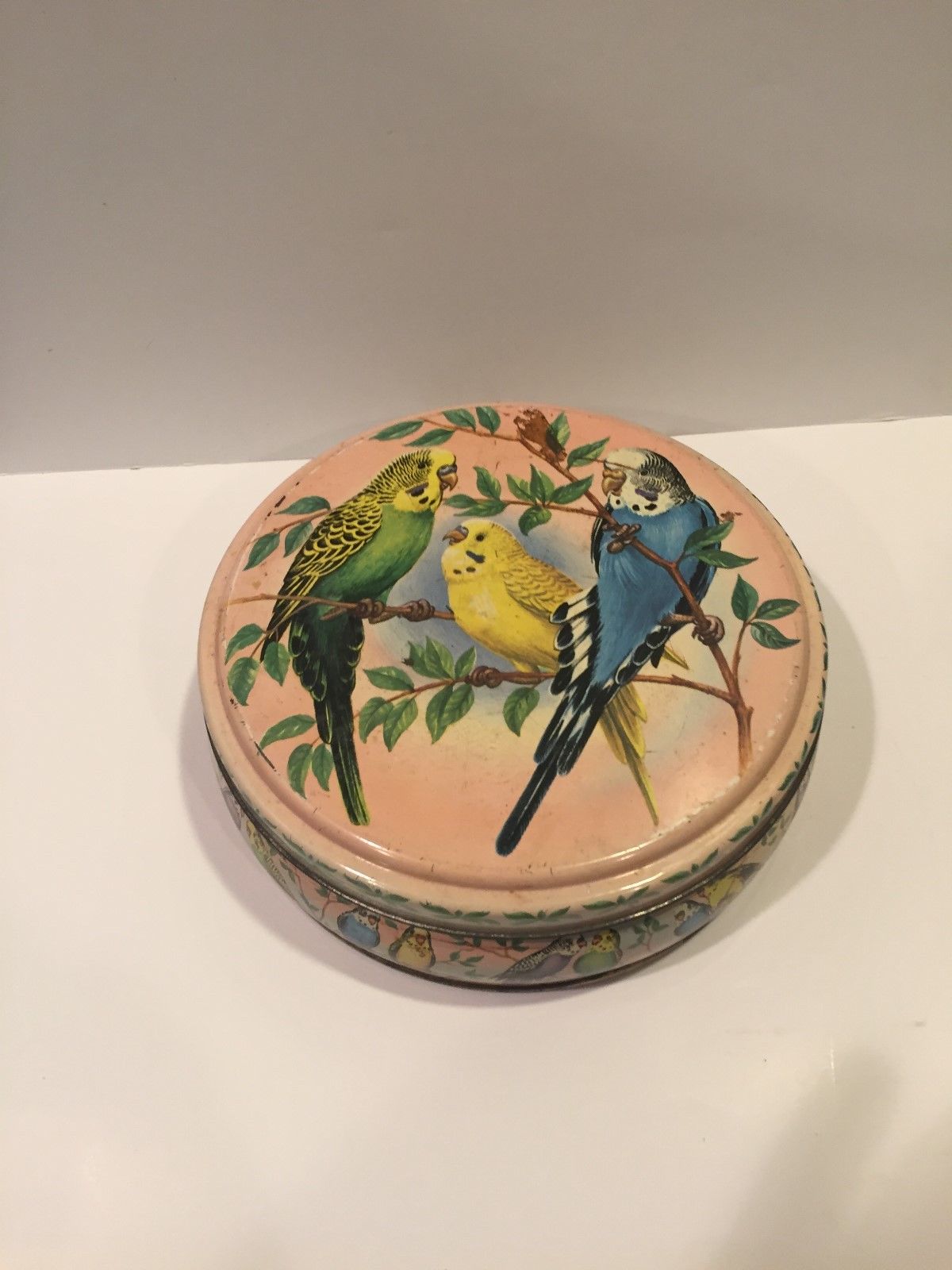 Title (ebay affiliate link): Vintage Peek Frean biscuit tin, English scenes, 5 1/4" diameter, 3 5/8" tall