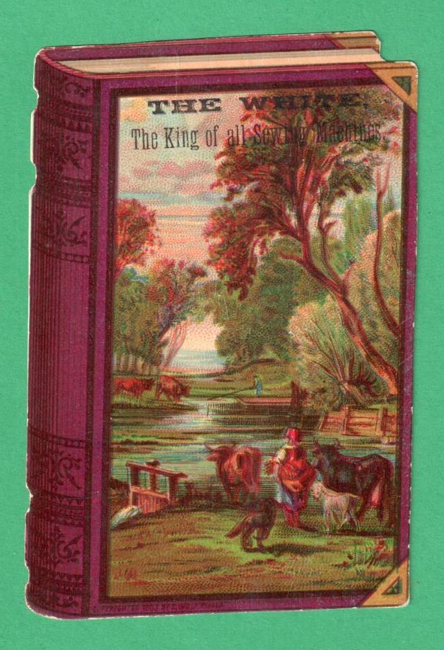 ANTIQUE BOOK-SHAPE TRADE CARD THE WHITE SEWING MACHINE RURAL SCENE