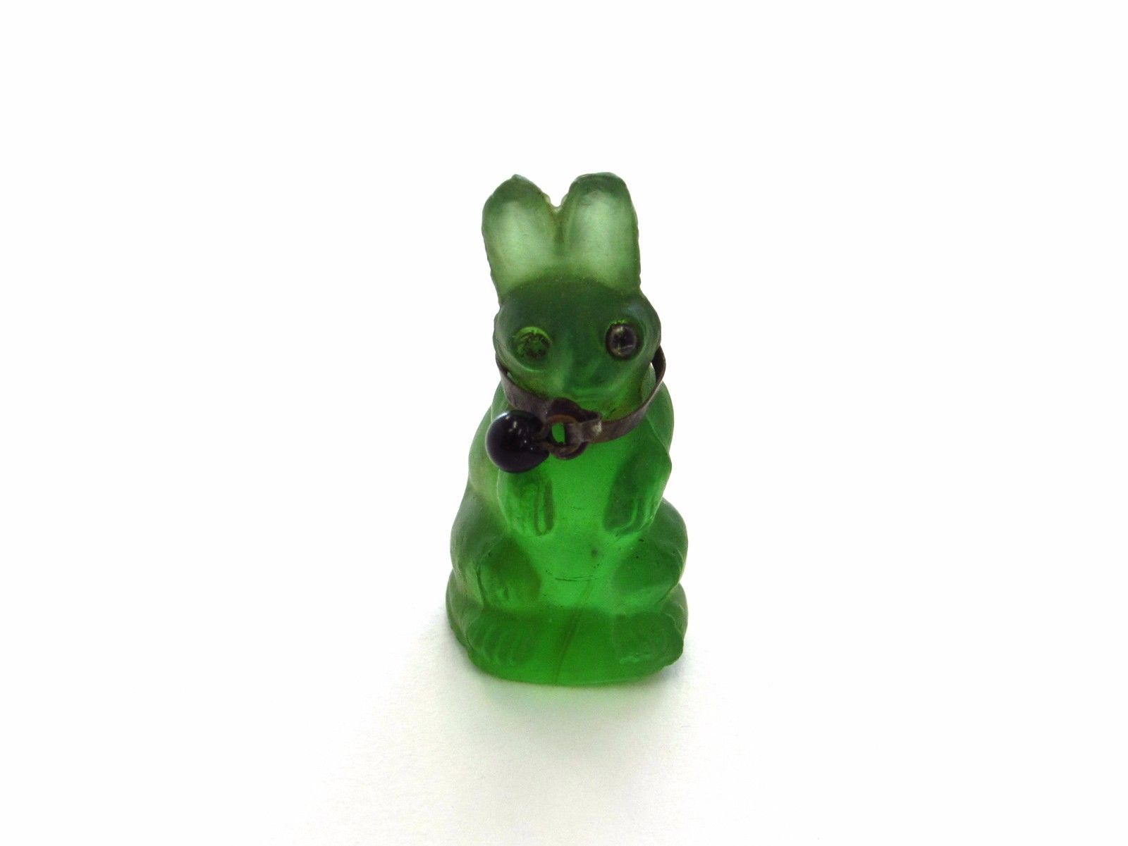 Title (ebay affiliate link): Vintage 1930''s Czech Glass Cracker Jack Green Bunny Rabbit W/ Collar Prize Charm