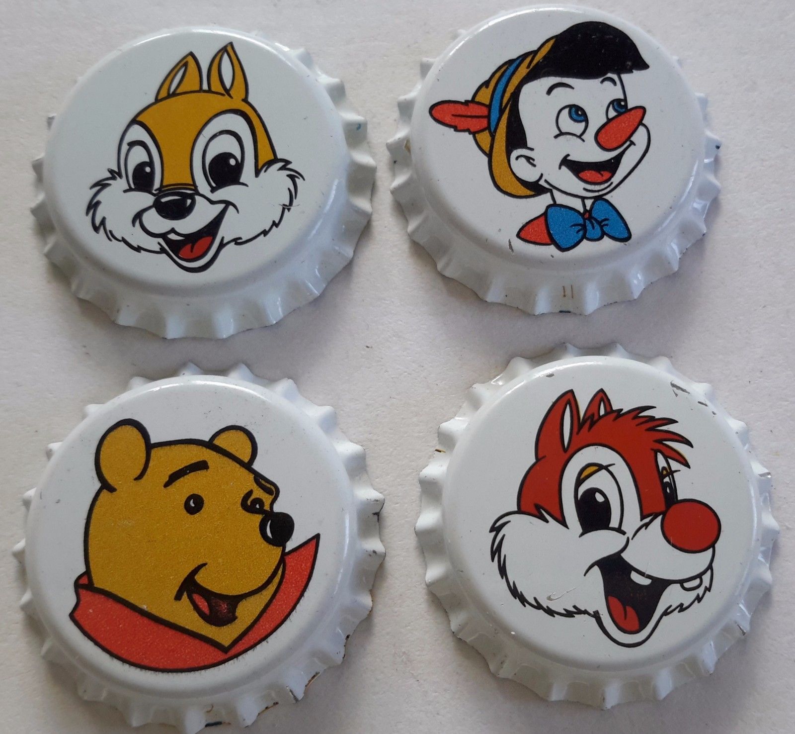 4 Disney bottle caps set chapas capsules kronkorken tappi 1995 CZECH Pinochio