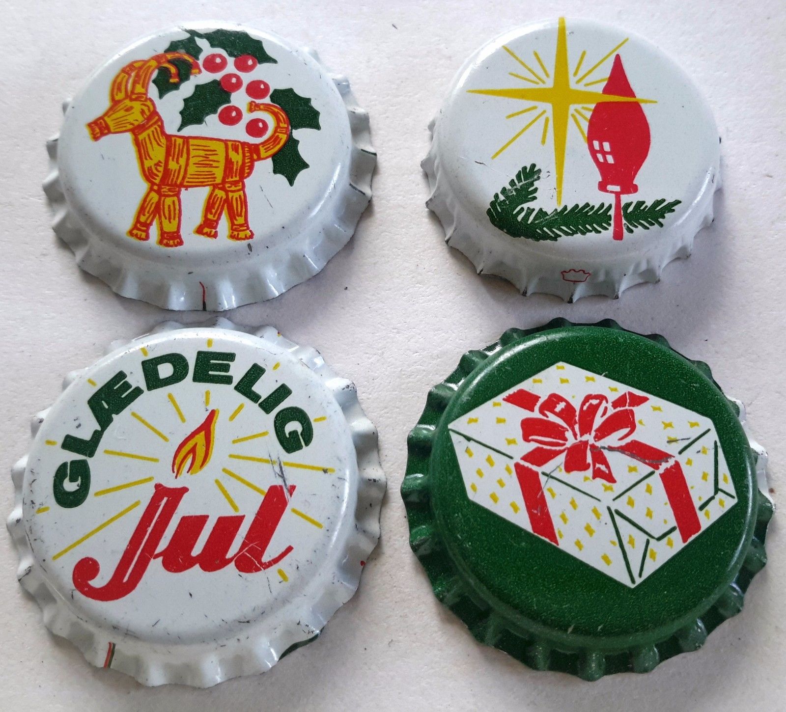 4 Christmas beer bottle caps set chapas capsules kronkorken 1996 Denmark