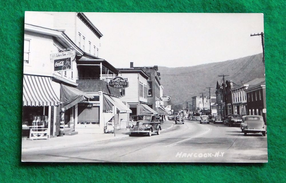 Hancock, New York RPPC postcard Street Scene, Classic Cars, Coca Cola 1951