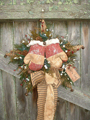 Title (ebay affiliate link): PRIMITIVE FALL/CHRISTMAS/WINTER TICKING STAR~VINTAGE BURGUNDY QUILT MITTENS