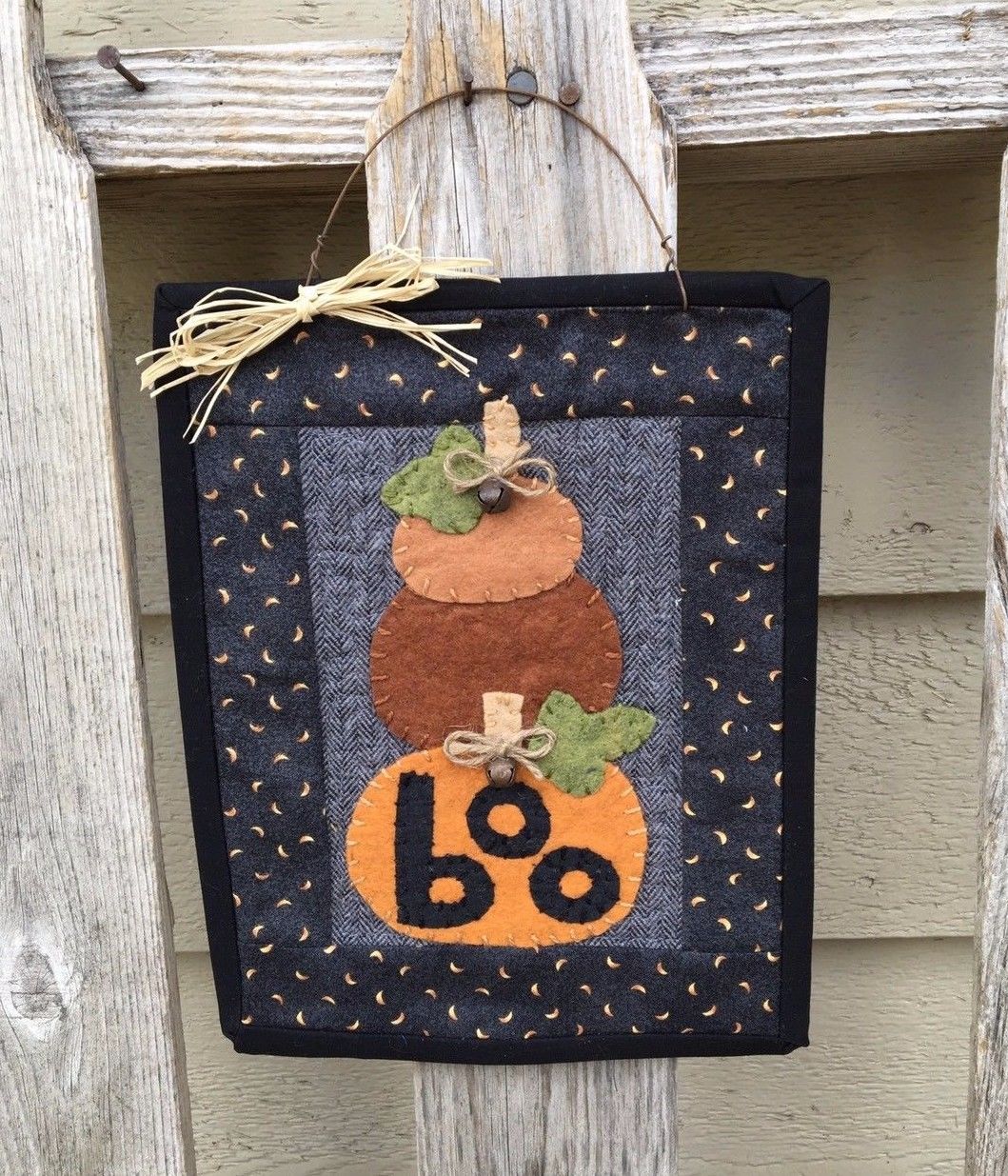 Title (ebay affiliate link): HALLOWEEN Quilt - Primitive Pumpkin Stack - Harvest Hanger - Mini Quilt