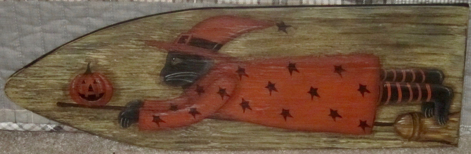 Title (ebay affiliate link): *~*PRIMITIVE*~* HP FOLK ART PRIM FLYING HALLOWEEN CAT *JACK-O-LANTERN* STRETCHER