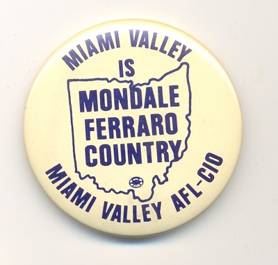 RARE Mondale Ferraro Miami Ohio Pinback Button Pin