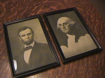 2-Old Pictures of George Washington & Abraham Lincoln