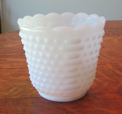 Vintage Fire King Milk Glass Hobnail Pot or Bowl