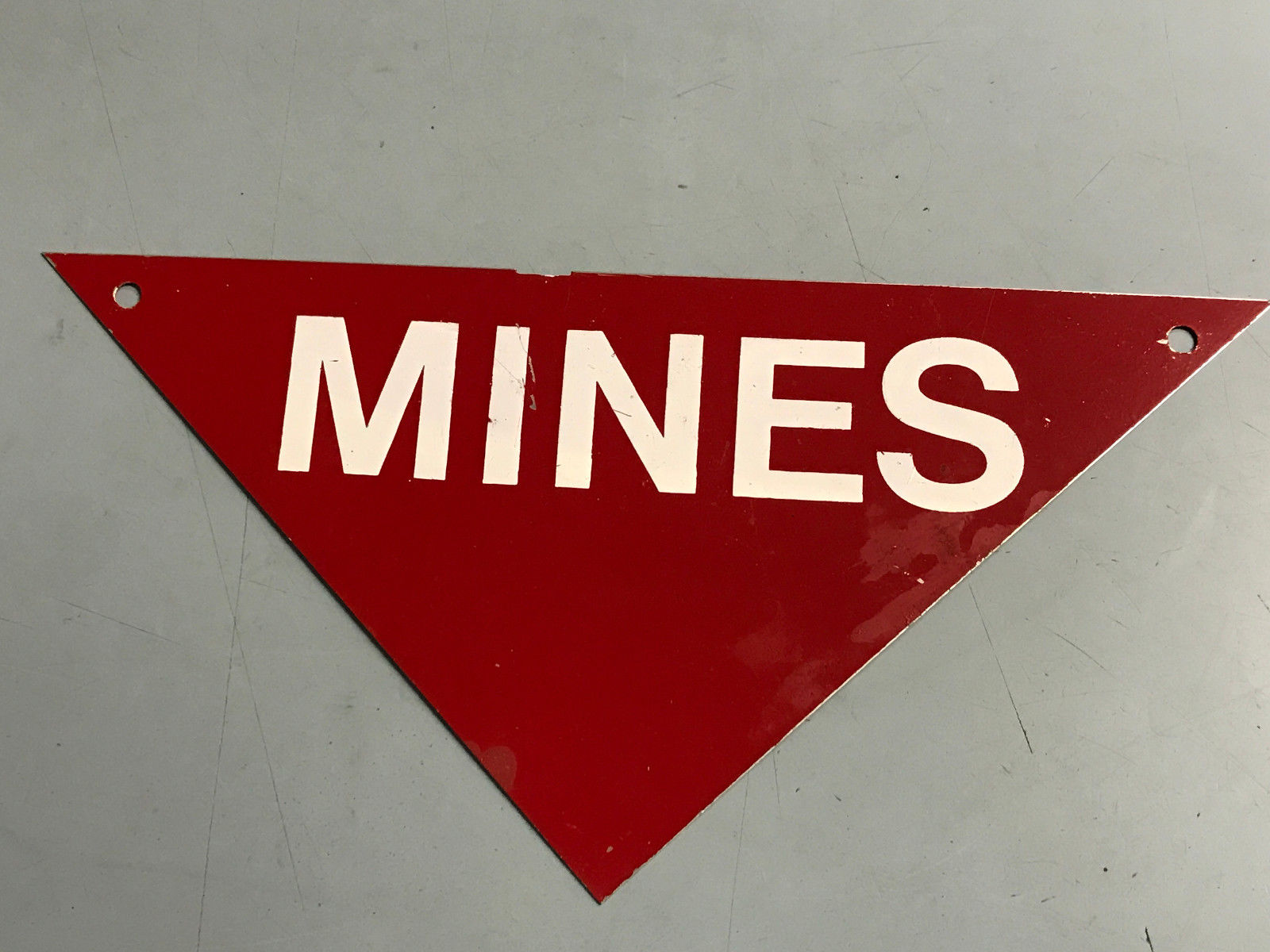 Vintage MINES Red Triangle Marking Warning Sign Minefield