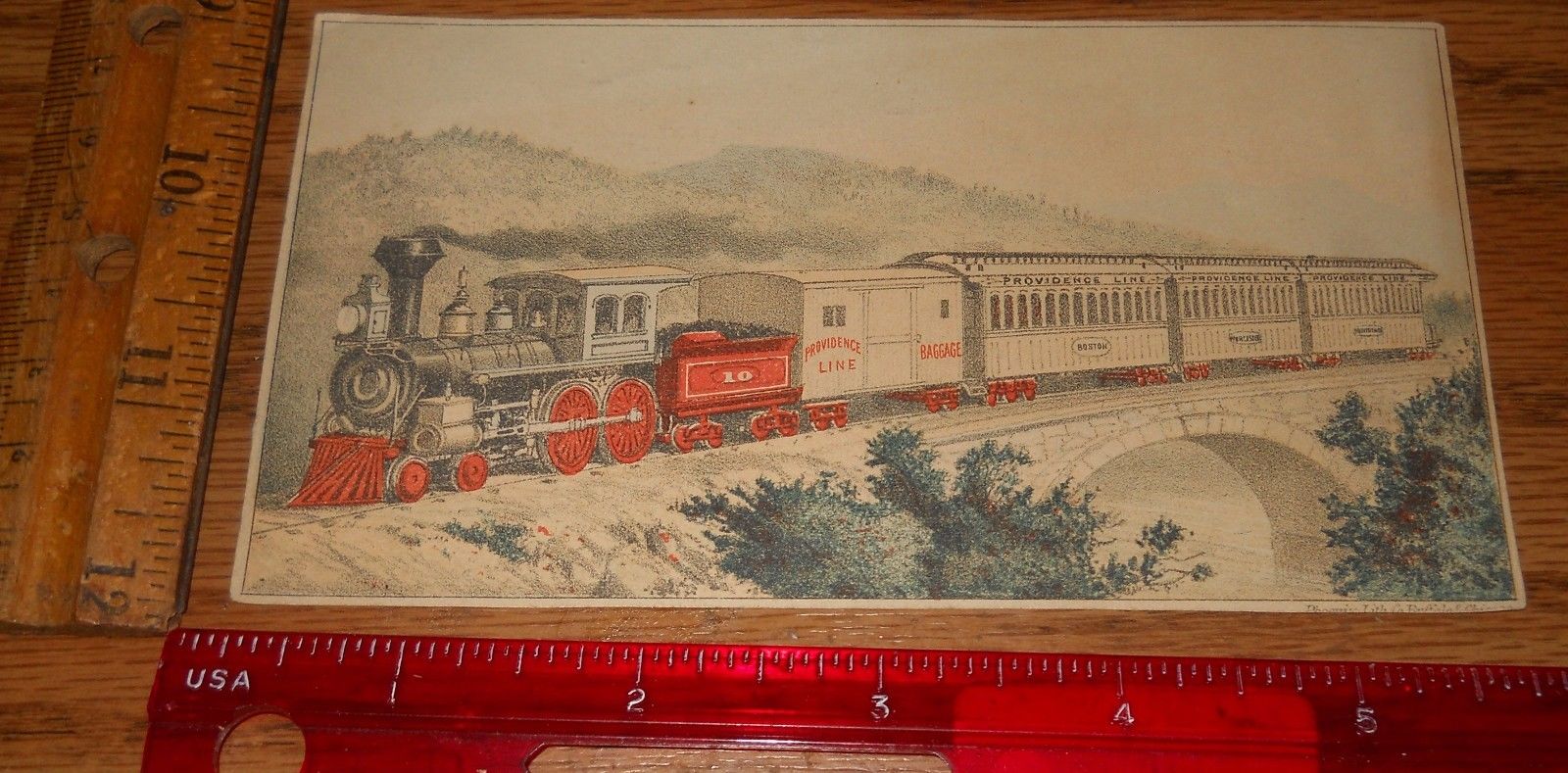 Title (ebay affiliate link): Victorian Trade Card~Providence Railroad Line~Train~Steamer/Mass./Rhode Island