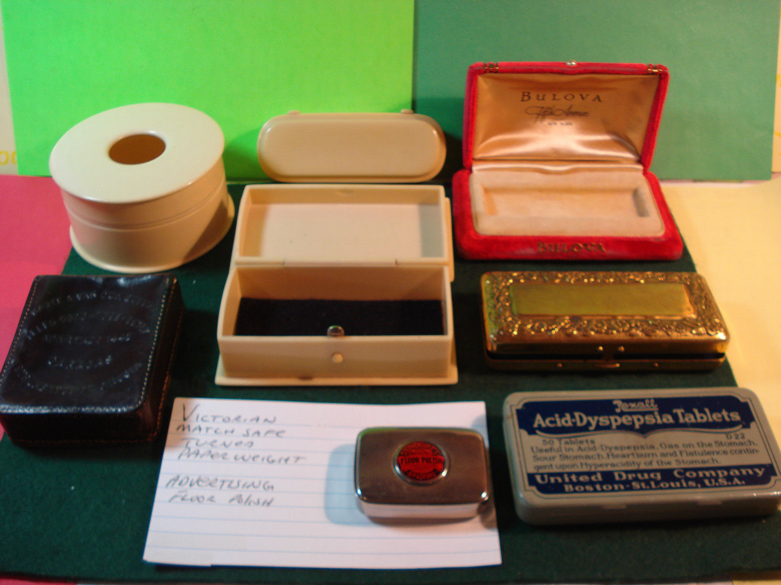 Title (ebay affiliate link): JUNK DRAWER LOT OF NICE BOXES CELLULOID BRASS TIN UNITED DRUG CO BULOVA LEATHER