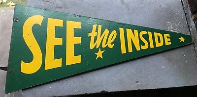 Title (ebay affiliate link): Vtg Advertising Sign SEE THE INSIDE * Particle Board Flag Shape Green & Yellow