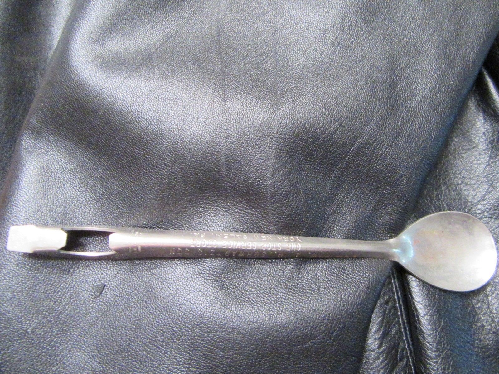NICE VINTAGE ADVERTISING BOTTLE OPENER/ SPOON -ONE STOP SERVICE STORE