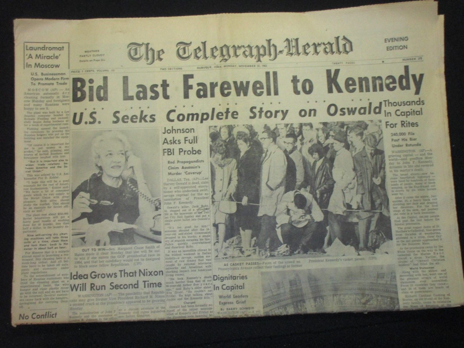 "BID LAST FAREWELL TO KENNEDY" TELEGRAPH HERALD DUBUQUE IOWA 11/251963